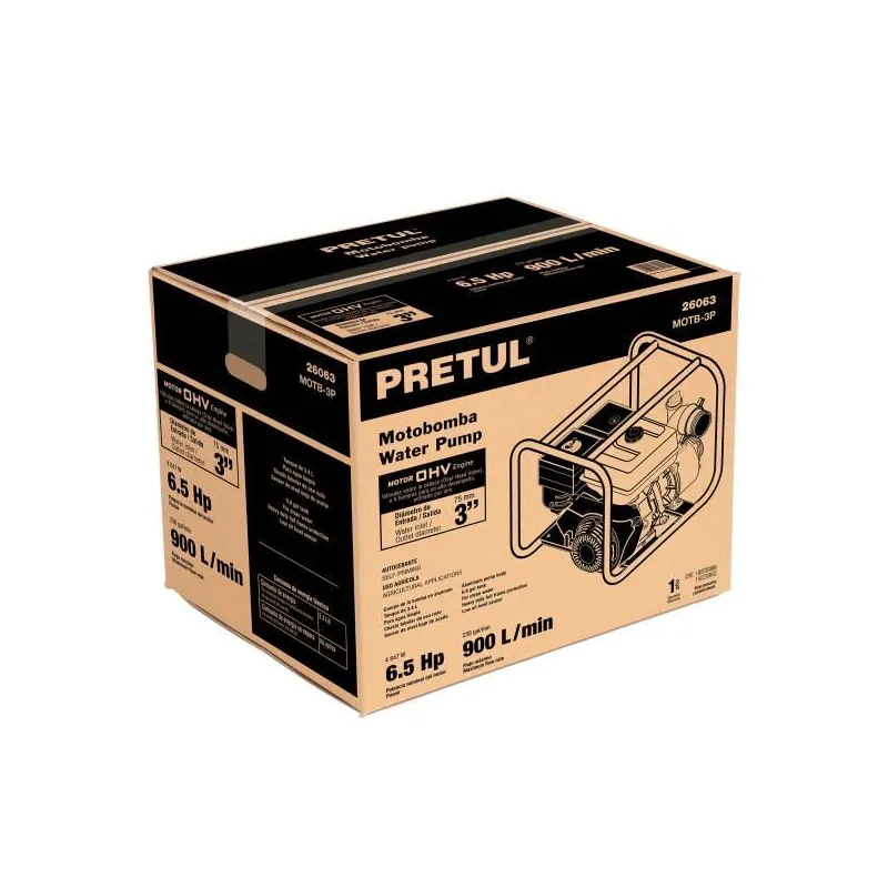 Motobombas 3" 4T 6.5HP 900L Motor Gasolina 212cc 4T 25m Pretul 26063