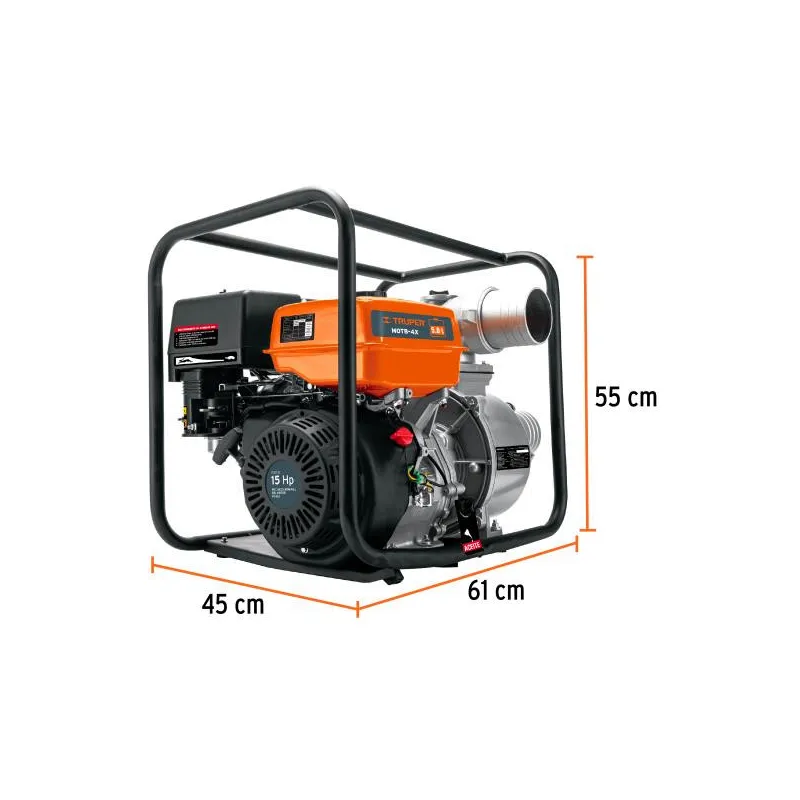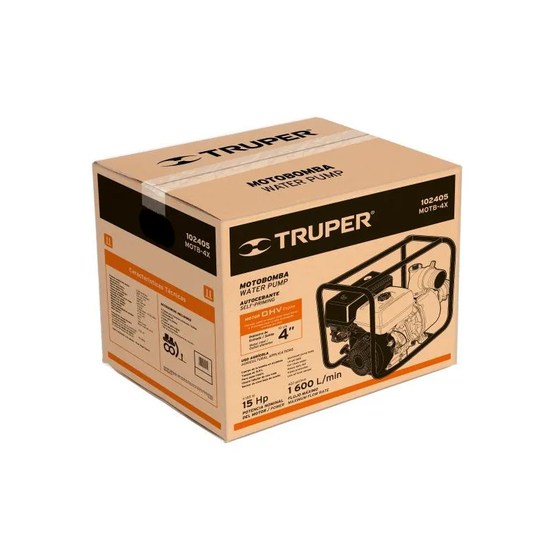 Motobombas 4" 15HP 1600L Motor Gasolina 420cc 4T 30m Truper 102405