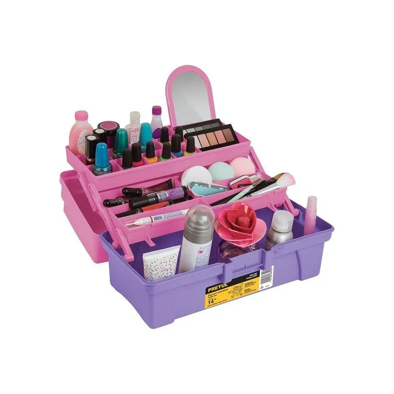 Cajas para Cosmeticos 14" 36x18x18cm 2Bandejas Deslizable Rosa Morado, Pretul 25052
