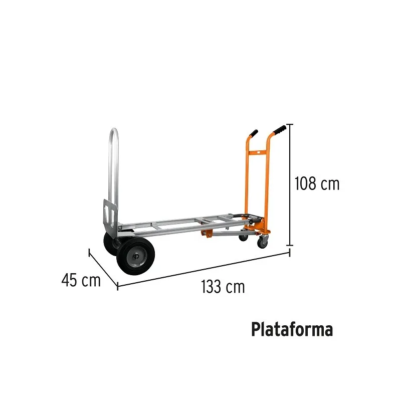 Carreta de Carga 350kg Convertible Aluminio Robusto 3en1 Diablo, Truper 16188