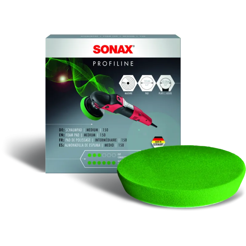 Esponja mediana de poro abierto para acabado fino en la pintura. Elevada durabilidad y cambio rápido en la pulidora gracias a un cierre de velcro. Excelente manejo gracias al borde biselado de la esponja. Diámetro de 143mm para plato soporte de 125 mm. Utilizar con Sonax Cut&finish (47.225.300) y Sonax perfect finish (47.224.300).
