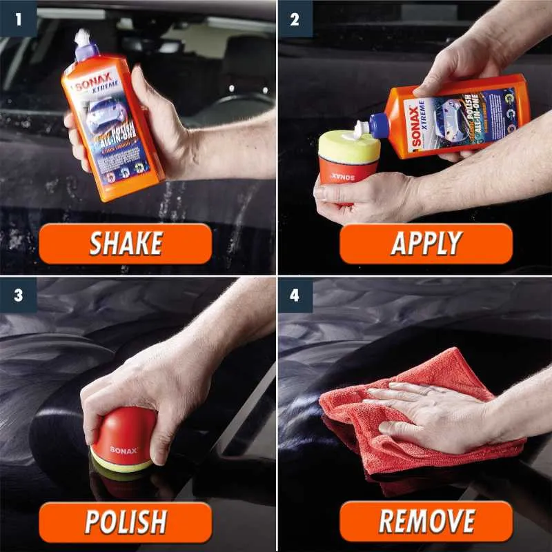 El nuevo XTREME Ceramic Polish All-in-One pule, alisa y sella la pintura en un solo paso. Se eliminan los molestos arañazos y las zonas opacas. Al mismo tiempo, la laca se recubre con una capa que repele la suciedad. La tecnología Si-Carbon proporciona una superficie aterciopelada, la pintura deslumbra con un brillo duradero y reflectante. Protege hasta 2 meses y deja un efecto repelente al agua.