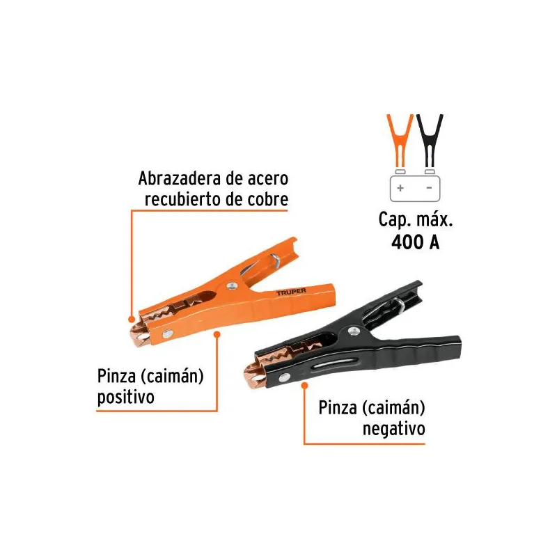 Caiman Cocodrilo para Cables pasa Corriente Auto Bateria Truper 100777