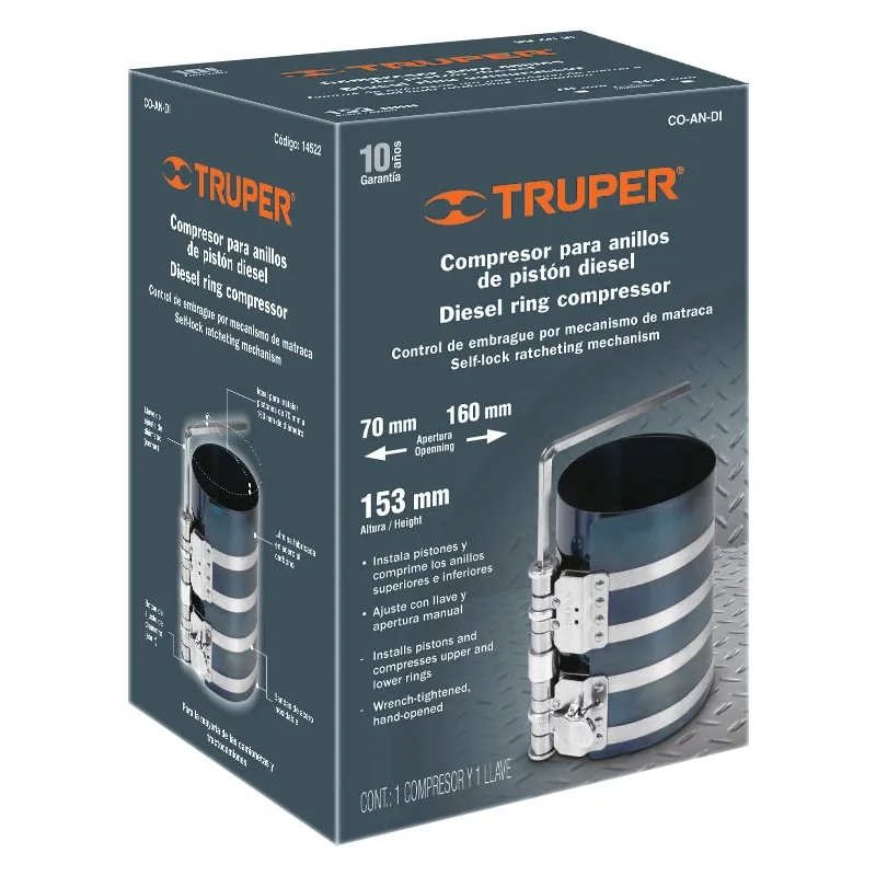 Compresor para Anillos de Piston, para Diesel, Apertura Min 70mm Max 160mm Altura 153mm, CO-AN-DI 14522 Truper