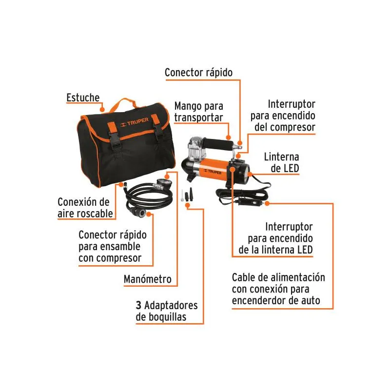 Compresora de Aire 12V Portatil para Auto con Maletin Truper 19999