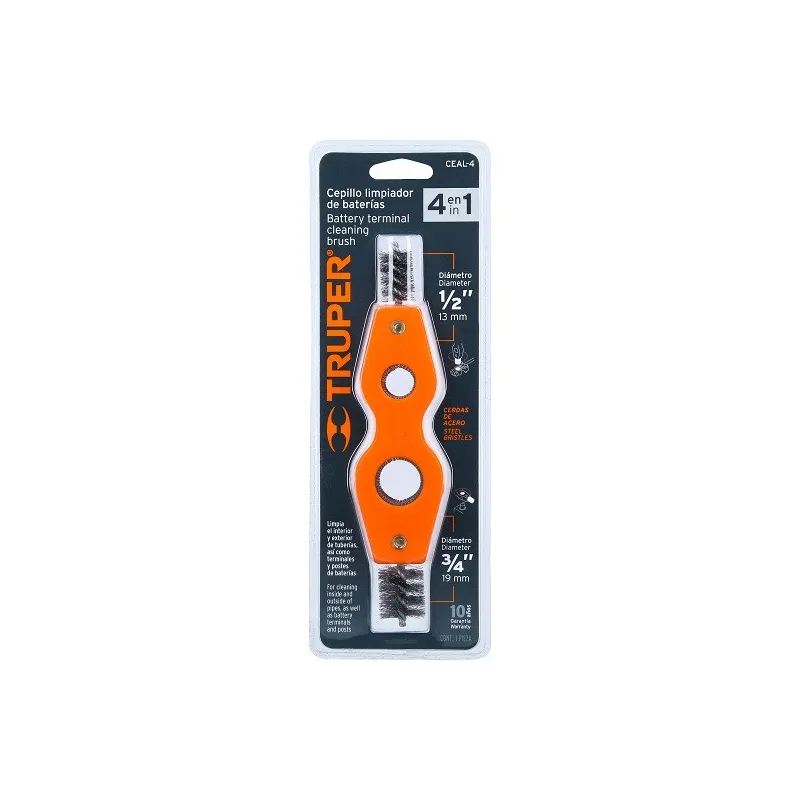 Cepillo Limpiador de Terminales de Baterias 4 en 1, Truper 17110