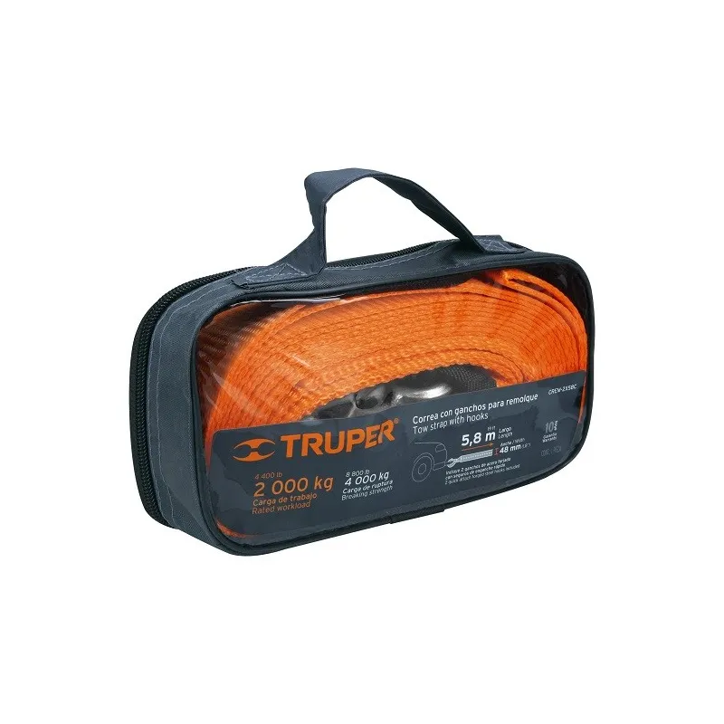 Correa para Remolque 5.8m x48mmm con Gancho 2000kg, Truper CREM-2X58C 18344