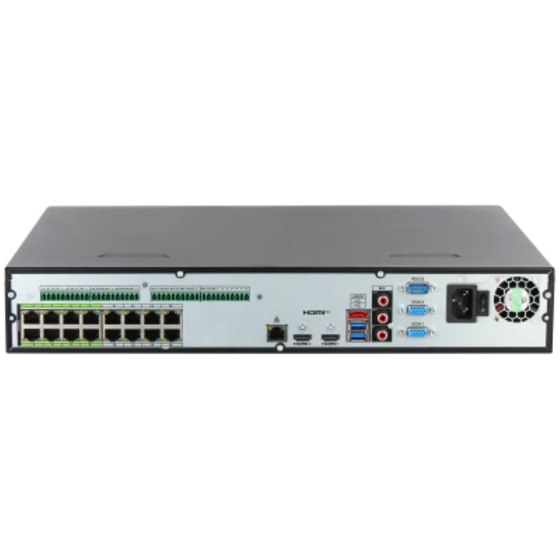 | Consumo de energía | La salida total del NVR es <13 W (sin HDD) La potencia de salida total de PoE es de 200 W, la potencia de salida máxima de un solo puerto es de 25,5 W |