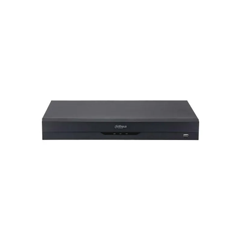 | Entrada de cámara analógica | Hasta 16 canales de acceso IPC 8 canales IP por defecto + 8 canales (los canales analógicos se convierten en canales IP) ancho de banda entrante: 128 Mbps, ancho de banda de grabación: 128 Mbps y ancho de banda saliente: 128 Mbps *Después de agregar canales IP más allá de los canales existentes, la función AI (IVS, SMD, FACE) se desactivará. |