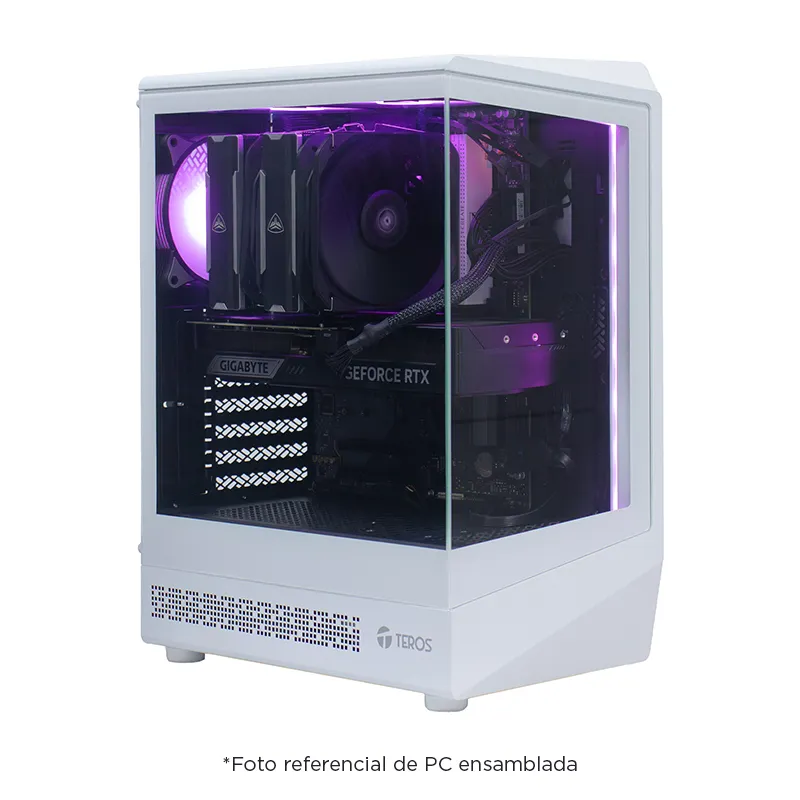 Case sin fuente Gamer TEROS TE-1329G ITX M-ATX ATX 3.5" y 2.5" Blanco Arma tu PC con estilo y alto rendimiento usando el case gamer TEROS TE-1329G en color blanco. Compatible con placas ITX, Micro-ATX y ATX, ofrece amplio espacio para tarjetas gráficas de hasta 37 cm y excelente flujo de aire con 4 ventiladores preinstalados. Su panel de vidrio templado,...