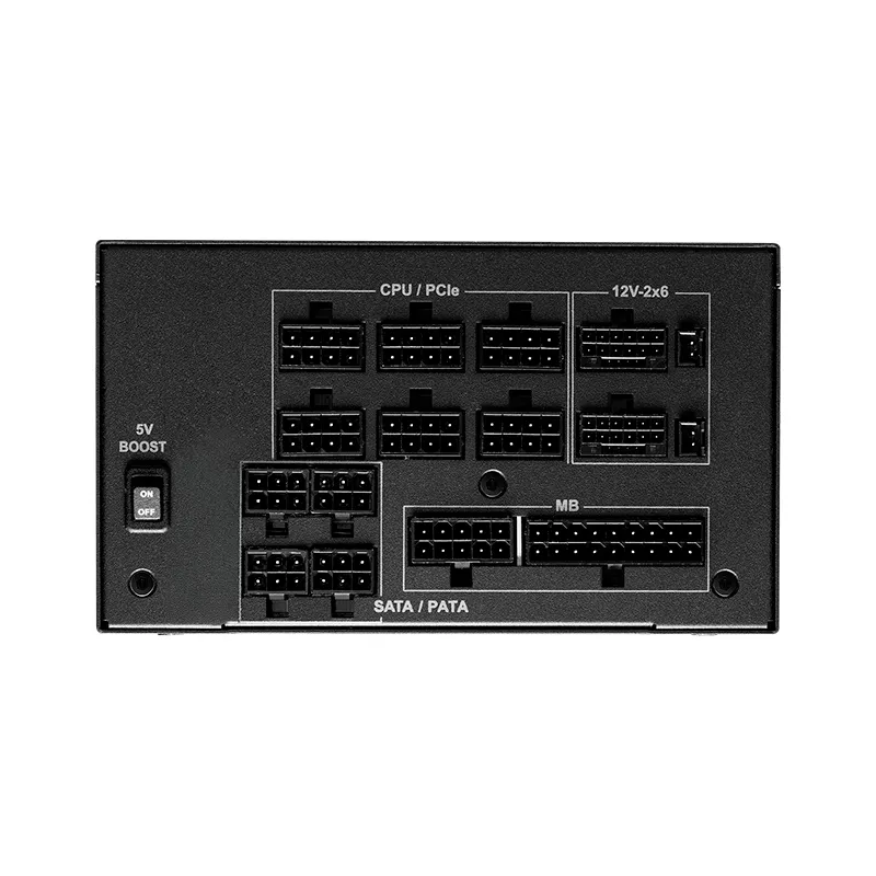1 conector ATX 24/20 pines, 2 conector EPS 2x4, 6 conectores PCI-e 8 pines (6+2), 9 conectores SATA, 3 conectores Periféricos, 2 x 16-pin PCIe Power, ventilador interno de 13.50 cm.