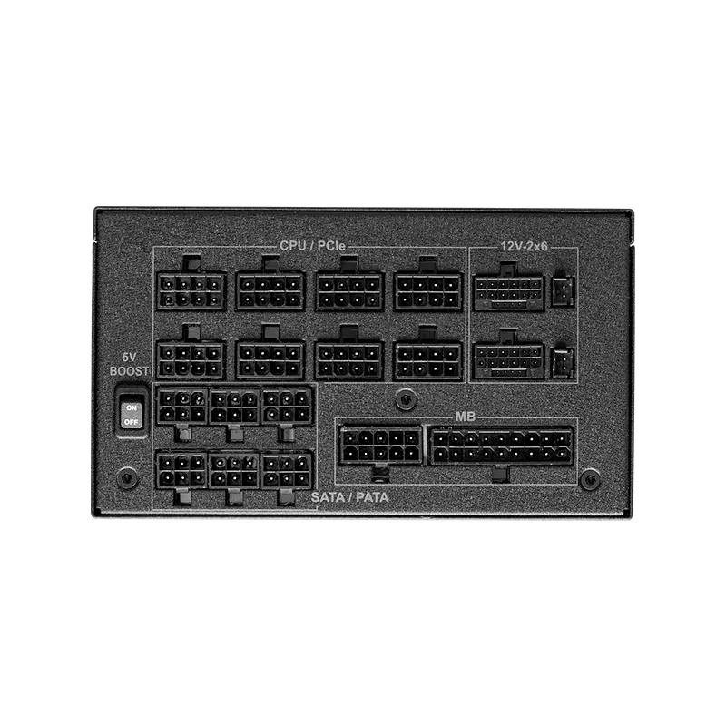 1 conector ATX 24/20 pines, 2 conector EPS 2x4, 8 conectores PCI-e 8 pines (6+2), 12 conectores SATA, 6 conectores Periféricos, 2 x 16-pin PCIe Power, ventilador interno de 13.50 cm.
