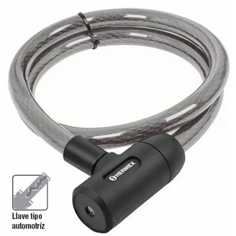 Cables de Seguridad con llave 15mm 1.20m, en acero con cubierta PVC, Incluyen 2 llaves tipo automotriz, CB-15 43920 Hermex