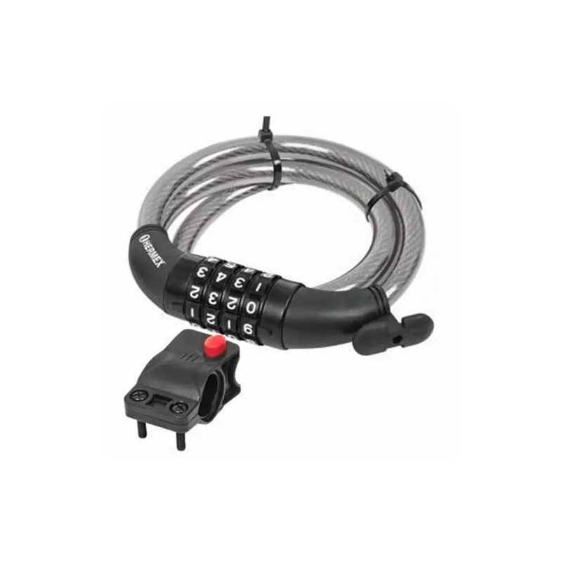 Cable de Seguridad de combinacion 8mm 1m, en acero con cubierta PVC, 4 Combinaciones, CB-8C 43924 Hermex • Cable de acero• Combinación de 4 dígitos• Ideal para motocicletas, bicicletas, embarcaciones, rejas, escaleras, equipo de construcción, etc.• Portacandado para cuadro de bicicleta• Diámetro: 8 mm• Largo: 1 m