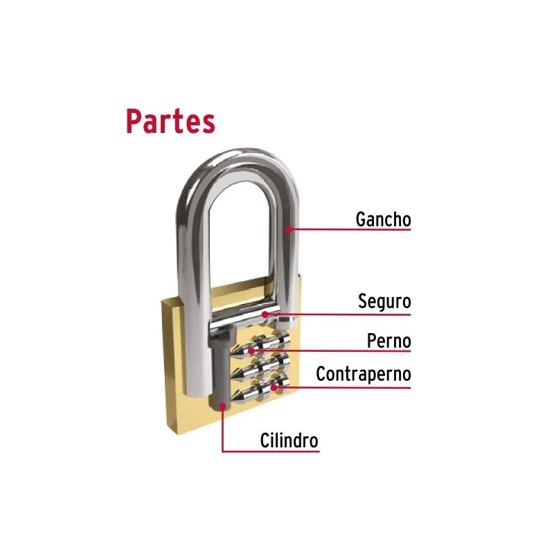 Candados 38mm S3 Hierro Hermex 43315 Cuerpo de hierro en una sola pieza y gancho corto reforzado de acero con acabado cromado Seguro tipo perno, seguridad estándar Cilindro de latón sólido con pines que brinda resistencia a robos Mecanismo interno resistente a la corrosión