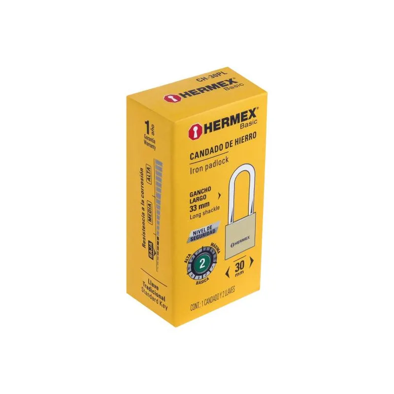 Candados 30mm S2 Hierro GanchoLargo Hermex 27070