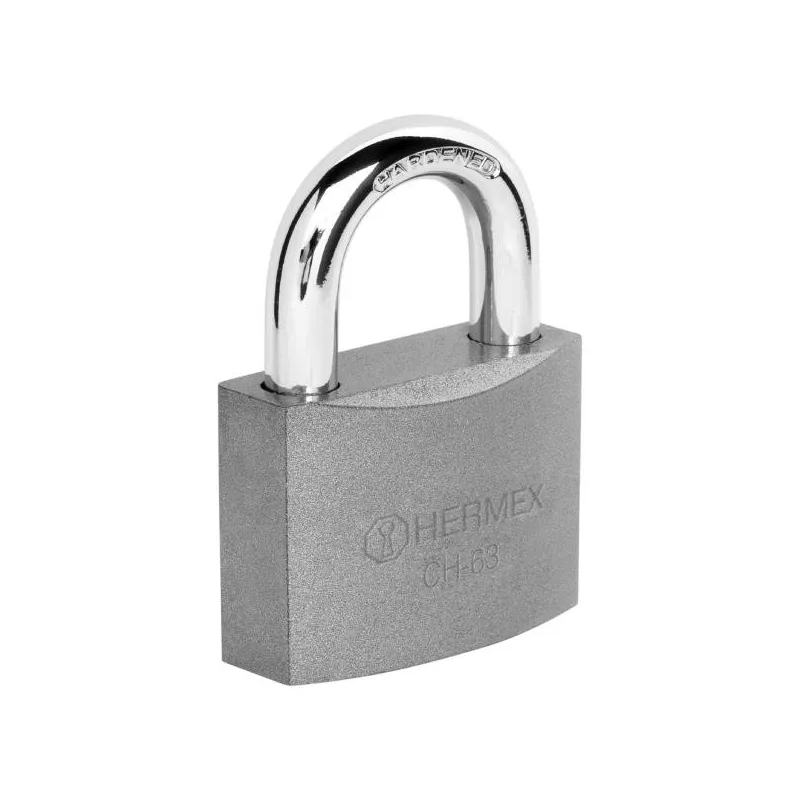 Candados 60mm S7 3llavesPuntos Hermex 43302 Cuerpo de latón sólido acabado pulido y gancho corto de acero con acabado cromado Seguro tipo perno, seguridad estándar Cilindro de latón sólido con pines que brindan resistencia a robos Mecanismo interno resistente a la corrosión Llave y componentes de latón para mayor vida útil