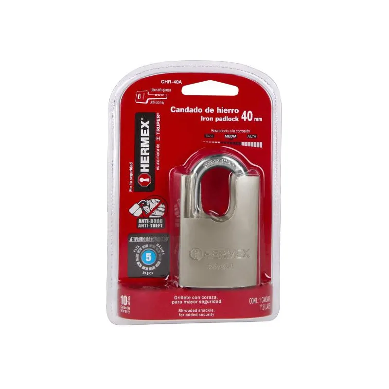 Candados Acorazado 40mm S5 Hierro 3llaves Anti-Ganzua Hermex 43312