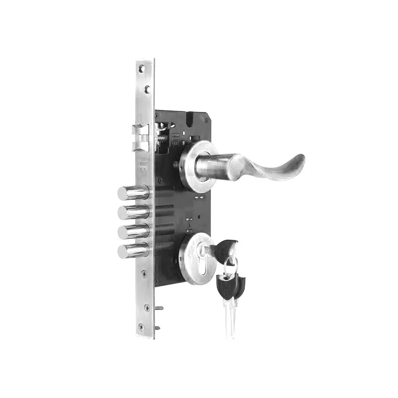 Cerradura de Embutir Forte Enigma 3G Onda DER Acero Inox 3Golpes 4Pivotes