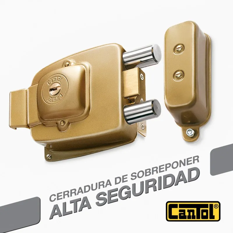 Cerradura Alta Seguridad Cantol Maxima M-1100 Dorado 3Golpes 4LlavesDH 10Pines 2Pivotes Pprincipal Madera