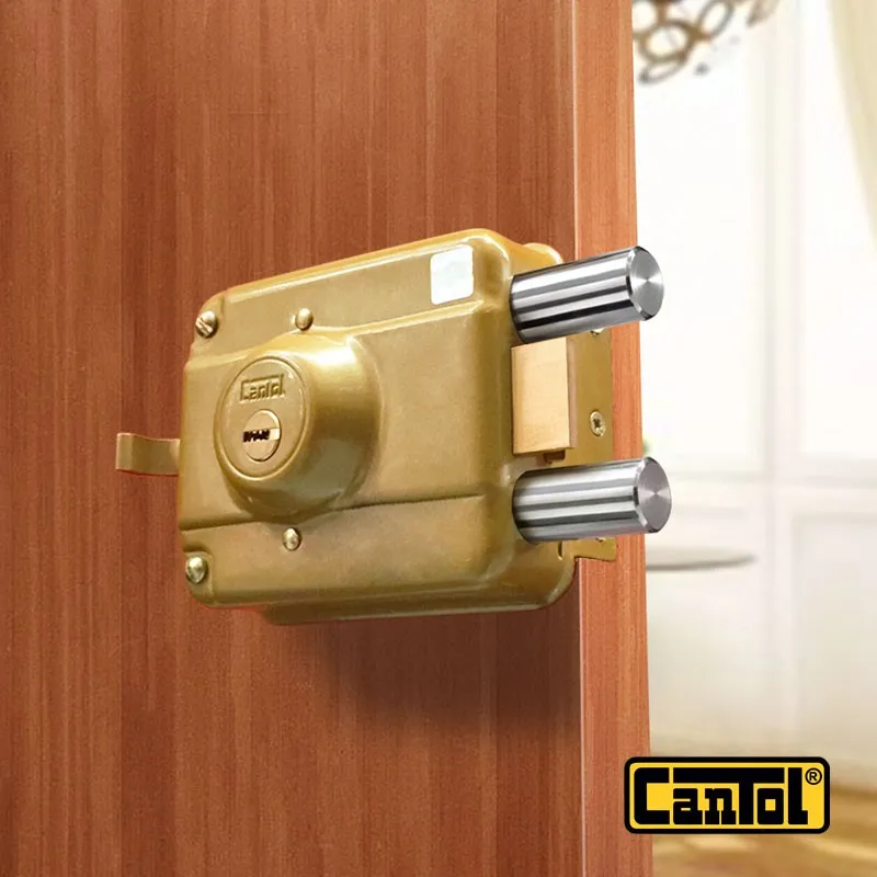 Cerradura Alta Seguridad Cantol Mega S990 Dorado 3Golpes 4LlavesDH 10Pines 2Pivotes Int-Ext Madera