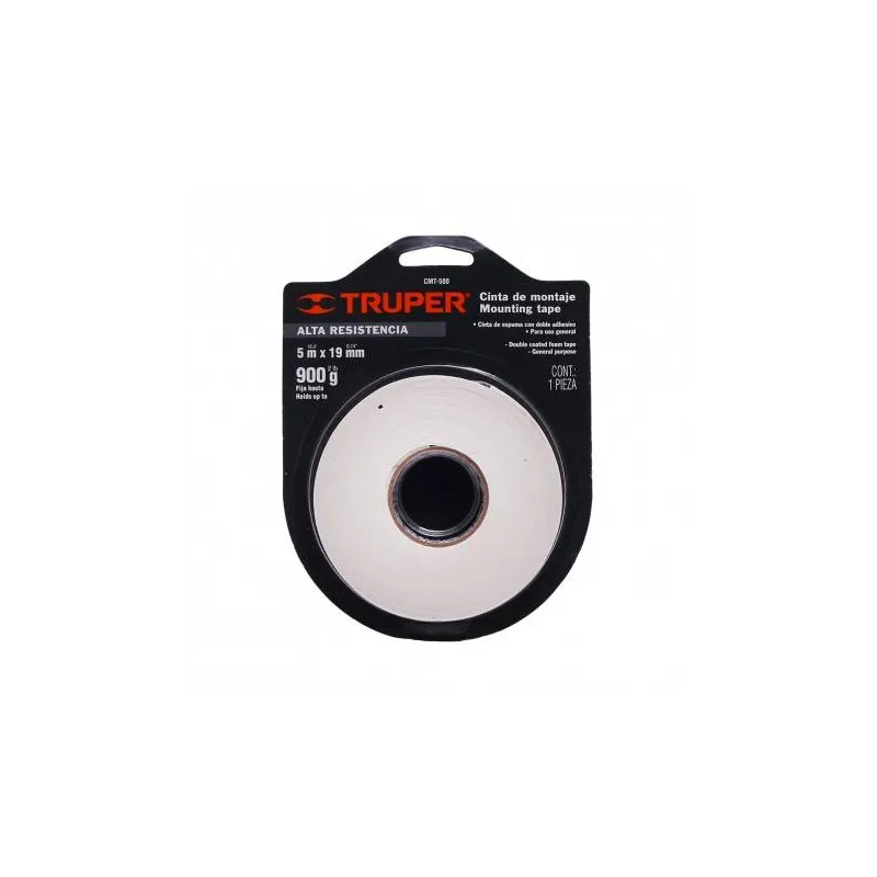 Cinta de Doble Contacto 5m Ancho 19mm Espesor 1mm, Soporta 2Kg, Doble Adhesivo, CDC-1950 11725 Truper 200% Mayor adhesión en superficies rugosas y 100% mayor capacidad de carga Cintas de espuma de polietileno, mayor resistencia a la ruptura con doble adhesivo hot melt Fácil instalación sin necesidad de clavar o atornillar Para uso en interiores Se...