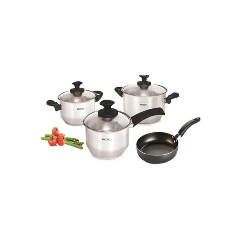 Juego de Ollas Encanto 8 Piezas, en acero inoxidable y fondo termodifusor con tapa de vidrio, 870021003 RECORD