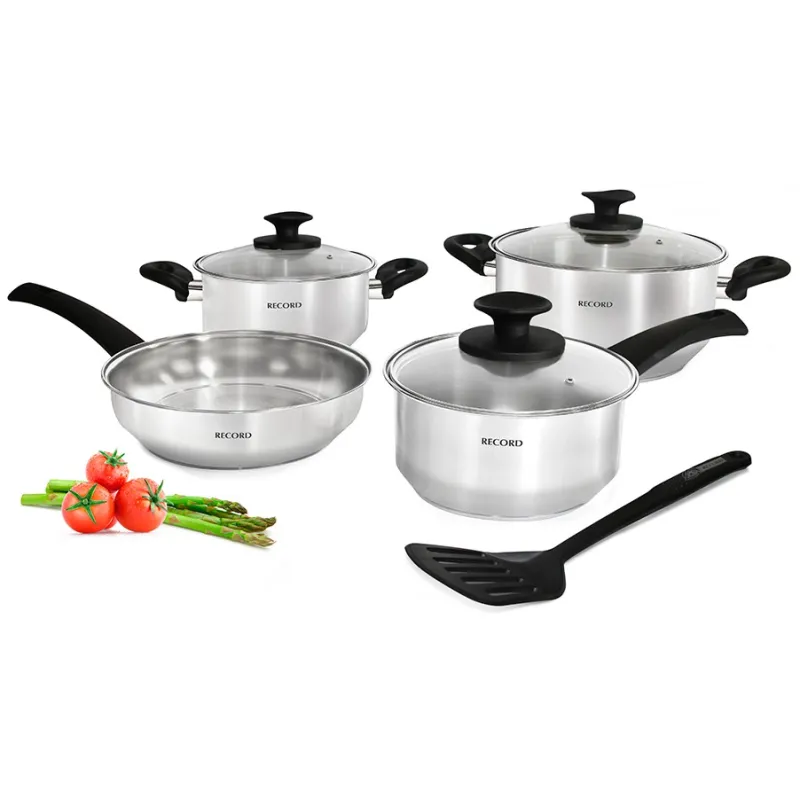 Juego de Ollas Marquesa 10 Piezas, 5 Capas accesorios con baquelita con fino acabado, 820010127 RECORD Sus 5 capas y la tecnología utilizada en su fabricación, brindan  una cocción más rápida y uniforme, concentrando el delicioso sabor de sus comidas. La belleza de su forma y fino acabado realzan la elegancia de su cocina