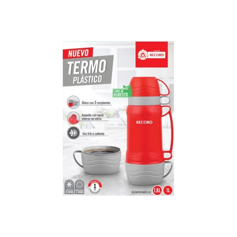 Termo Plastico 1L Ampolla de Vidrio Uso Frio Caliente, 2108000001 Record