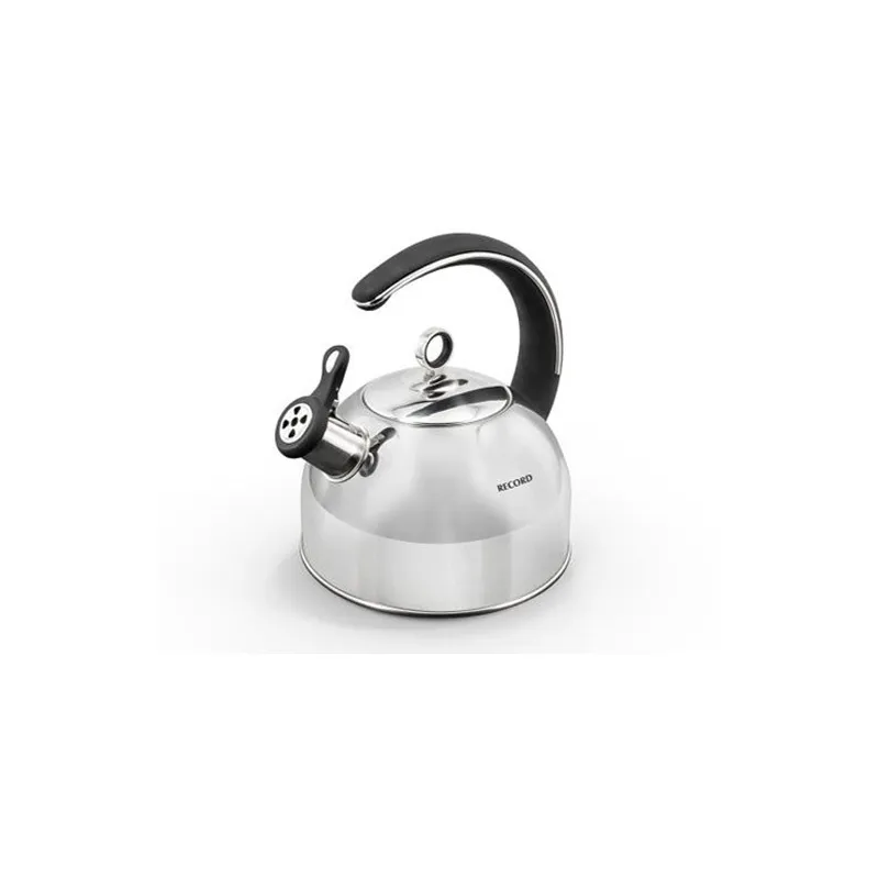 Tetera Letizia 1.9 Litros, en acero inoxidable quirurgico con Pito silbador, 1270040018 RECORD • Acero inoxidale quirúrgico de calidad certificada.• Accesorios de bakelita aislante de calor para mayor seguridad. Diseño moderno y ergonómico.• Pito silbador de acero inoxidable.