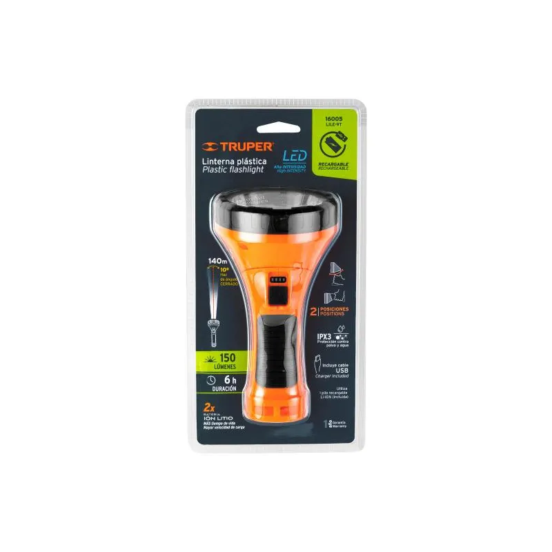 Linternas LED 150lm recargable AltaLuminosidad 140m Truper 16005