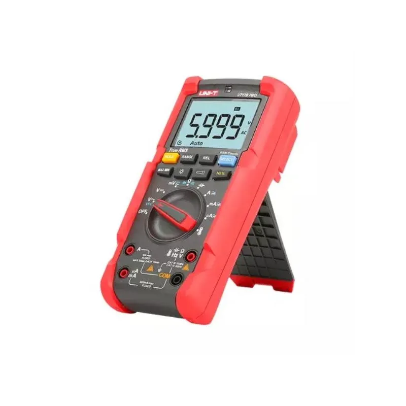UNI-T UT17B PRO es un multímetro digital True RMS diseñado para medir el voltaje AC/DC, corriente AC/DC, resistencia, capacitancia, frecuencia, ciclo de trabajo, temperatura, probar continuidad de circuitos y chequear diodos.