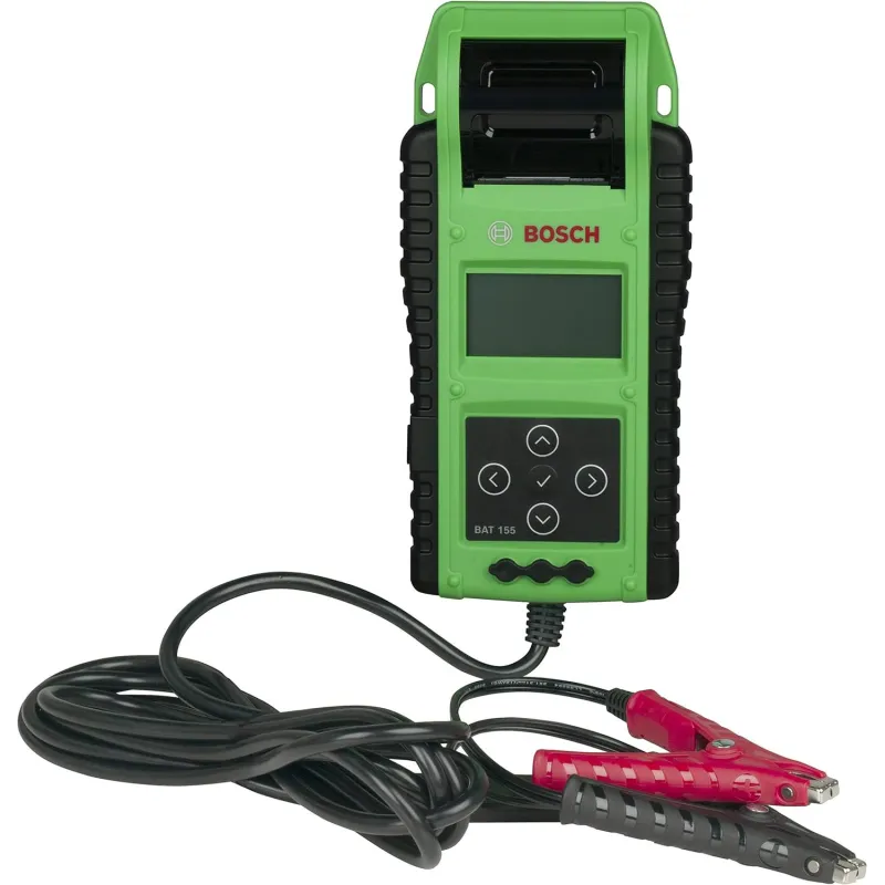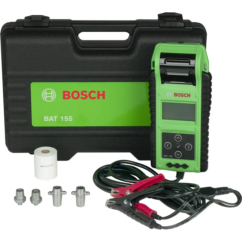 El probador de bateador de servicio pesado Bosch BAT 155 es un probador avanzado de batería y sistema eléctrico de servicio pesado, diseñado para la industria de vehículos comerciales, que cuenta con tecnología patentada de resistencia dinámica de carga única que proporciona resultados rápidos y precisos. Pruebe con precisión las baterías de 6 V y 12 V, con capacidad de prueba de 100 a 6,000 amperios de arranque en frío (CCA), incluyendo baterías AGM, Gel Cell, plomo ácido inundado, Start/Stop EFB y Commercial SLI utilizando una prueba de microcarga para resultados probados. La herramienta versátil también prueba los sistemas de carga de 12 V y 24 V con una prueba de diodo/ondulación. Características de BAT 155: rango de prueba de 1.5 VCC a 60 VCC, abrazaderas de prueba desmontables para servicio o reemplazo, sensor de temperatura infrarrojo que mide la temperatura de la batería para una mayor precisión de la medición de CCA, y postes de carga de batería adicionales para simplificar la conexión. Sonda de amplificador y voltímetro opcionales se venden por separado. Admite inglés, francés (canadiense) y español norteamericano. La impresora integrada captura los resultados de las pruebas para los registros de los clientes, presentando el estado de salud y el porcentaje de estado de carga.