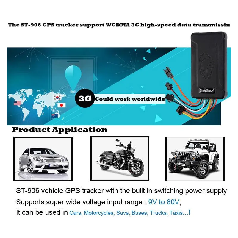 GPS Rastreador Sinotrack ST-906W Tracker para Auto Moto Camion 3G WCDMA GSM Bateria 180mAh