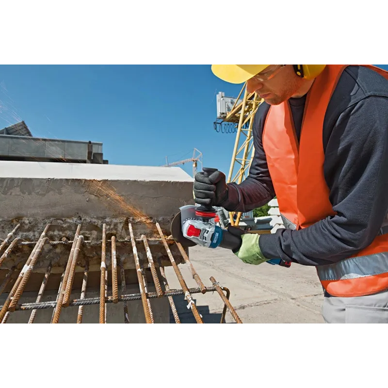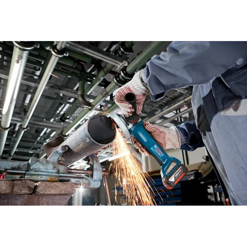 Esta herramienta es ideal para cortar y amolar metal y piedra. Es compatible con los dispositivos de aspiración de polvo GDE 125 EA-T y GDE 115 / 125 FC-T y con todas las baterías y cargadores de 18 V Bosch (18V System).