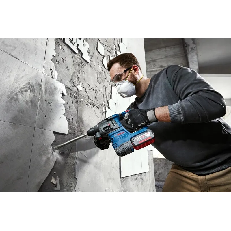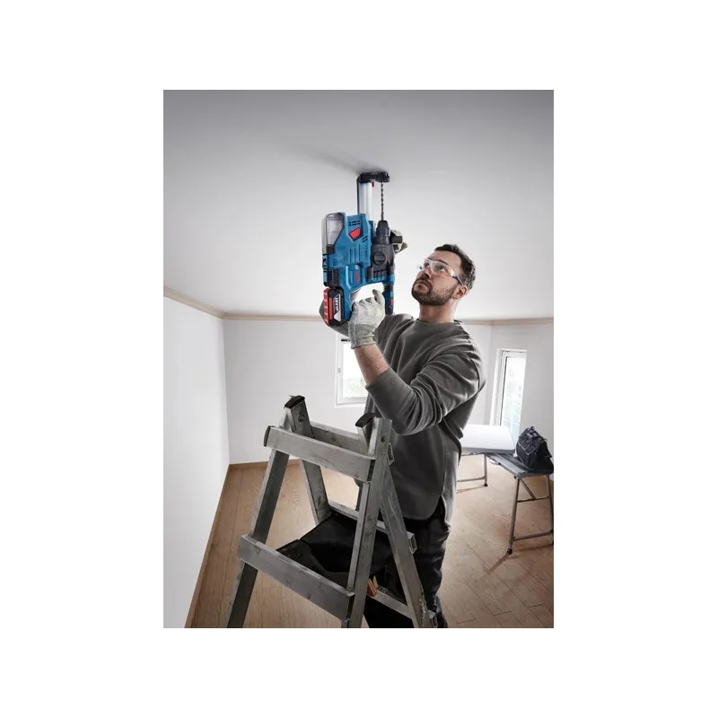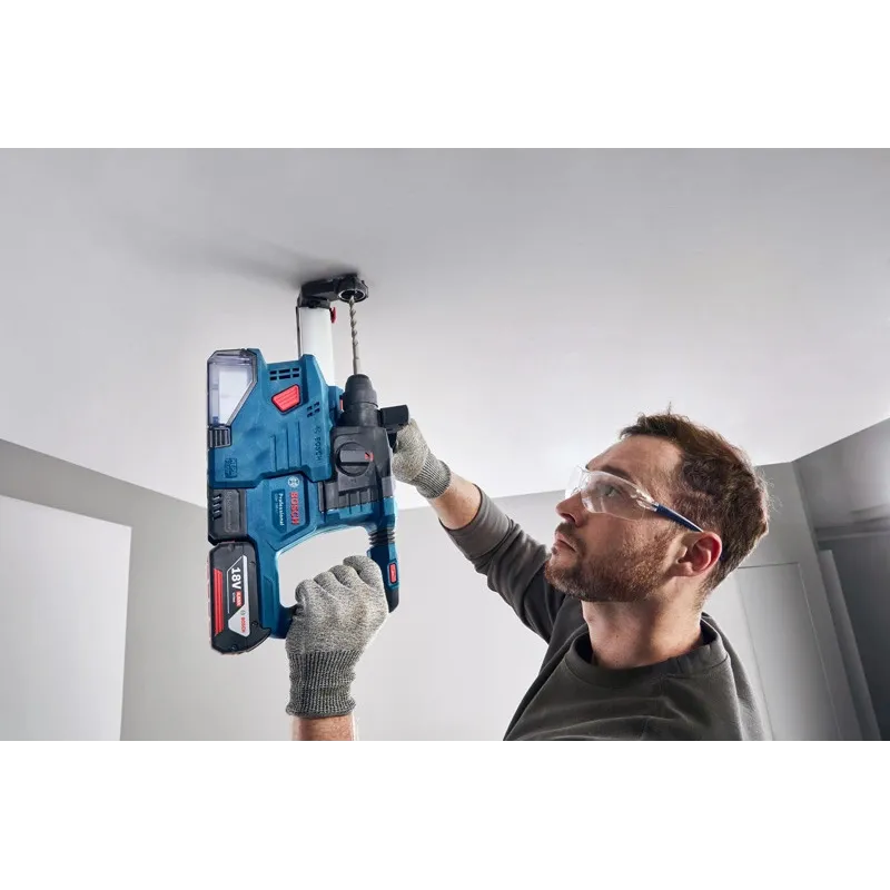 El GBH 185-LI está equipado con potencia y funciones para elevar la experiencia de perforar a otro nivel, con más eficiencia, seguridad y control. Permite realizar más perforaciones por cada carga completa de la batería y por la potencia estable que entrega el motor Brushless sin escobillas de carbón de 18 V de Bosch combinado con Constant Speed. Incluye seguridad mejorada frente a atascos accidentales y menor exposición a la vibración gracias a las funciones KickBack Control y Vibration Control, respectivamente. También contribuye a un ambiente de trabajo sin polvo gracias al extractor acoplable Auto Power GDE 12.