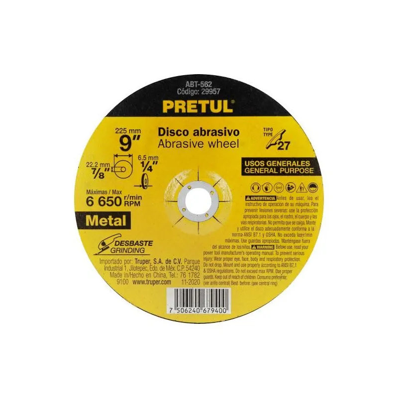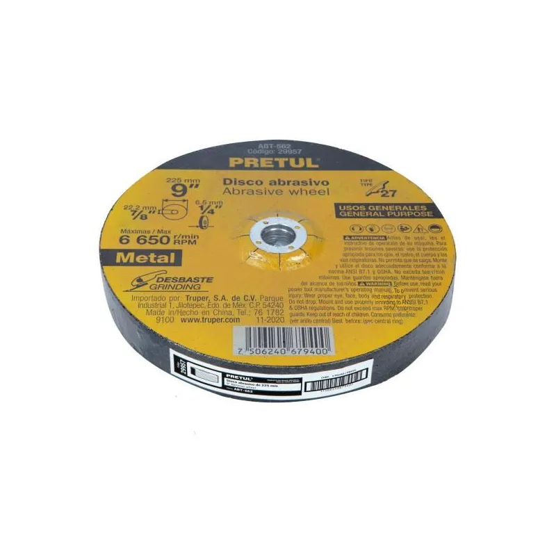 Disco para desbaste de metal, tipo 27, diámetro 9", Pretul