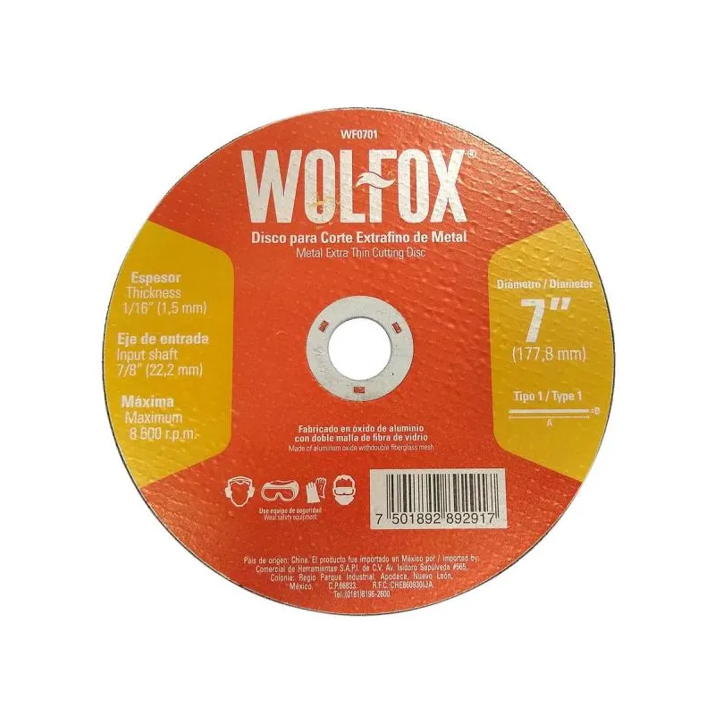Discos Corte 7" x1.5mm ExtraFino Metal E7/8 Wolfox WF0701