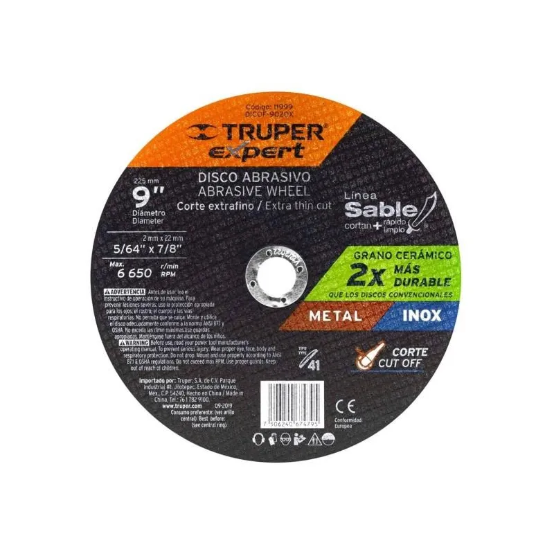 Discos de Corte Metal 9" x2mm OAluminio Inox D7/8 T41, Truper 11999