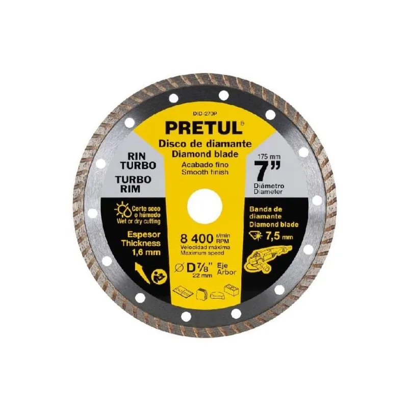 Discos diamante rin turbo, usos generales, Pretul