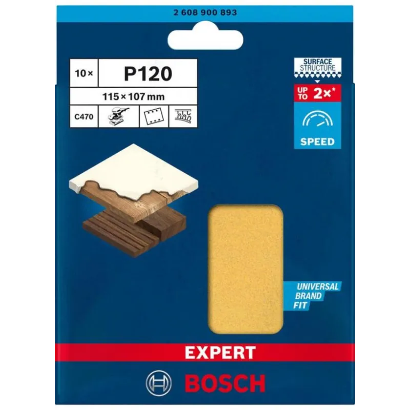 Hojas de Lijas 115x107mm G120 6Huecos x10u P/Orbital Expert Best Bosch 2608900893