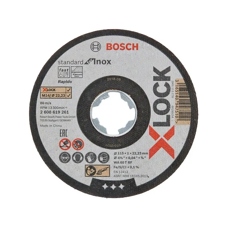 Disco de Corte Standard for Inox X-LOCK 115mm x1x22.23mm Centro Plano, Bosch 2608619261