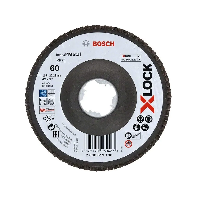 Discos Flap X571 Best for Metal X-LOCK 115mm G60 Curvo Fibra de Vidrio, Bosch 2608619198