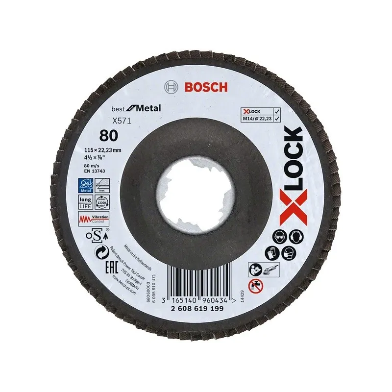 Discos Flap X571 X-LOCK G80 Curvo Fibra de Vidrio, Bosch 2608619199