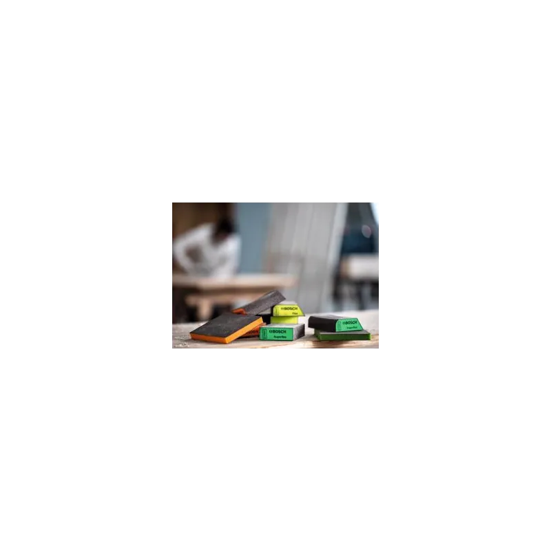 Esponjas para Lijar Perfiles Kit x3 Tacos Medio, Fino y Super Fino 69x97x26mm Bosch 2608901174 Pérdida mínima de limadura con Surface Structure de Bosch. Nuestra adhesión resistente y flexible asegura que la limadura permanezca en su lugar incluso cuando se lijan formas difíciles.