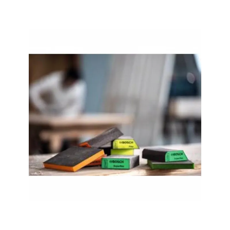 Esponjas para Lijar Perfiles Kit x3 Tacos Medio, Fino y Super Fino 69x97x26mm Bosch 2608901174 Pérdida mínima de limadura con Surface Structure de Bosch. Nuestra adhesión resistente y flexible asegura que la limadura permanezca en su lugar incluso cuando se lijan formas difíciles.