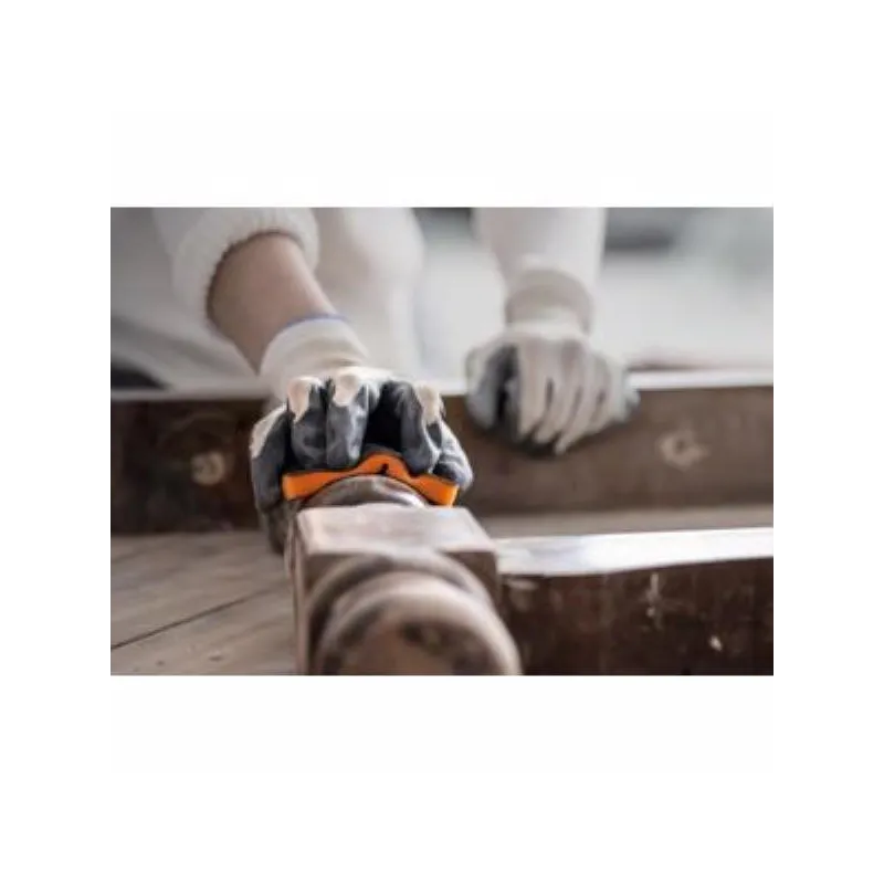 Esponja moldea a formas para una presión uniforme sobre la superficie. Produce un mejor acabado porque el desgaste de la superficie de lijado es uniforme.