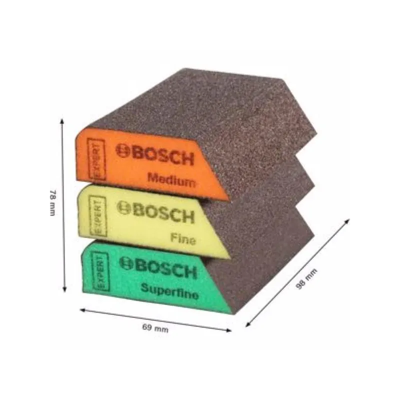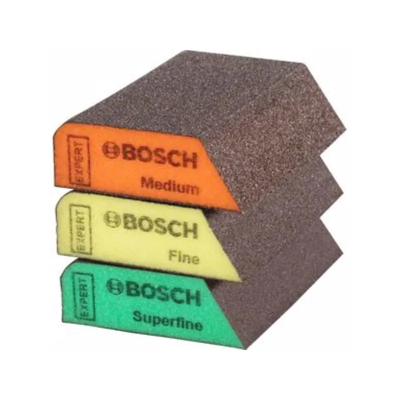 Esponjas para Lijar Perfiles Kit x3 Tacos Medio, Fino y Super Fino 69x97x26mm Bosch 2608901174