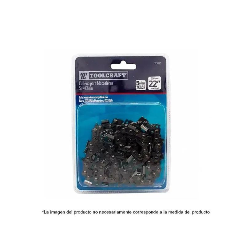 En Toolcraft nuestro compromiso es brindar productos de la más alta calidad a nuestros clientes; es por eso que hemos realizado mejoras a nuestras herramientas tanto en material de manufactura como en su imagen y funcionalidad, cumpliendo con los más altos estándares de calidad y avalados por diversos estudios que nos distinguen de ser una de las mejores marcas, en esta ocasión contamos con la Cadena Motosierra 16' para Modelo TC3885 Toolcraft TC3889