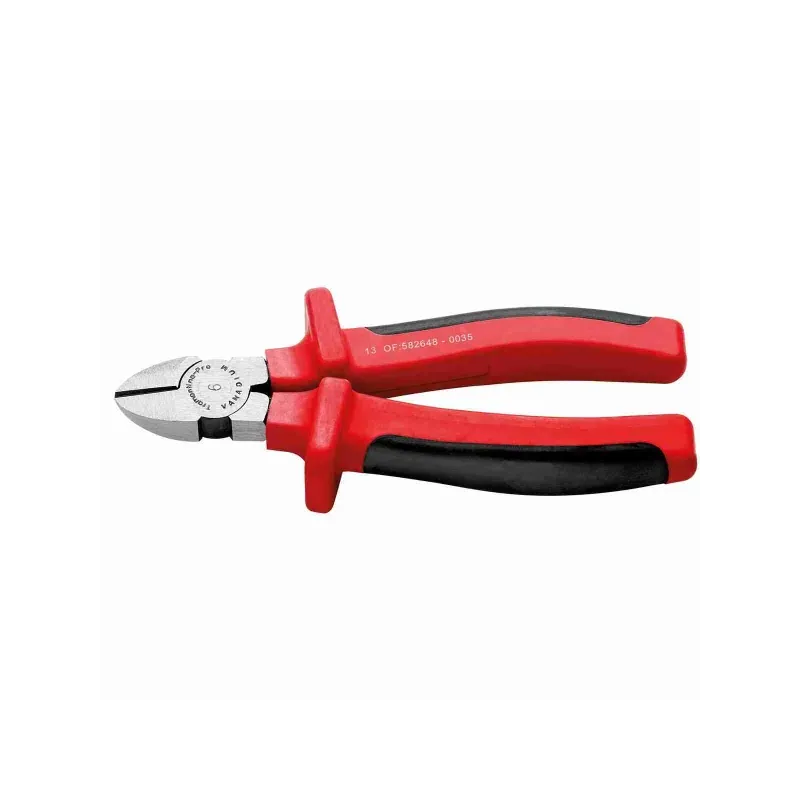 Alicate Corte Diagonal 6" Aislados 1000V DobleCapa IEC60900 Tramontina 44301/006 DOBLE AISLACION Forjado en acero cromo vanadio.  Cabeza y articulación pulidas.  Temple total en el cuerpo.  Temple por inducción en el hilo de corte. Aislamiento eléctrico de 1.000 V c. a.  Producto en conformidad con la IEC 60900.